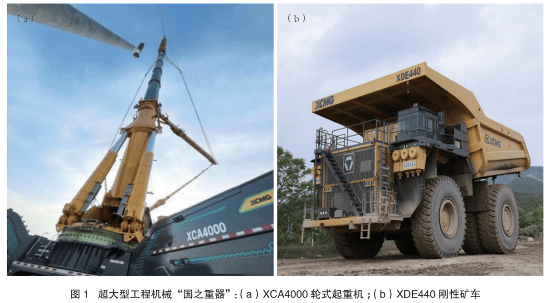 1.大型化与高强韧化协同牵引:在国家能源、交通强国等战略的驱动下,核电、风电、大跨度桥梁等超级工程不断涌现,促使工程机械向大吨位、高米数方向发展。例如陆上风机由8MW突破到15MW,风机高度达到全球最高200m级,最大单件重量超过230吨。针对大型风电安装应用场景,徐工机械开发了全球首款11桥4000吨轮式起重机,显著提升了风电装备的安装效率(见图1(a))。为满足南美、澳大利亚等全球高端矿业市场需求,徐工机械开发了全球最大400吨刚性矿车(见图1(b)),全车由高强度合金钢板和铸钢件制造,工作寿命达15000h以上。随着工程机械向大型化、超大载荷、超长服役周期方向发展,面对此类高强度连续作业工况,关键零部件过早出现磨损、疲劳等失效模式,严重影响整机的可靠性及施工效率,对材料耐磨、疲劳等性能提出更高要求,例如需要NM500以上的耐磨钢,焊接之后耐疲劳寿命高于10000h的高强度耐疲劳钢。这对钢材的强韧性匹配、抗疲劳性能、焊接工艺兼容性及断裂韧性构成系统性挑战。