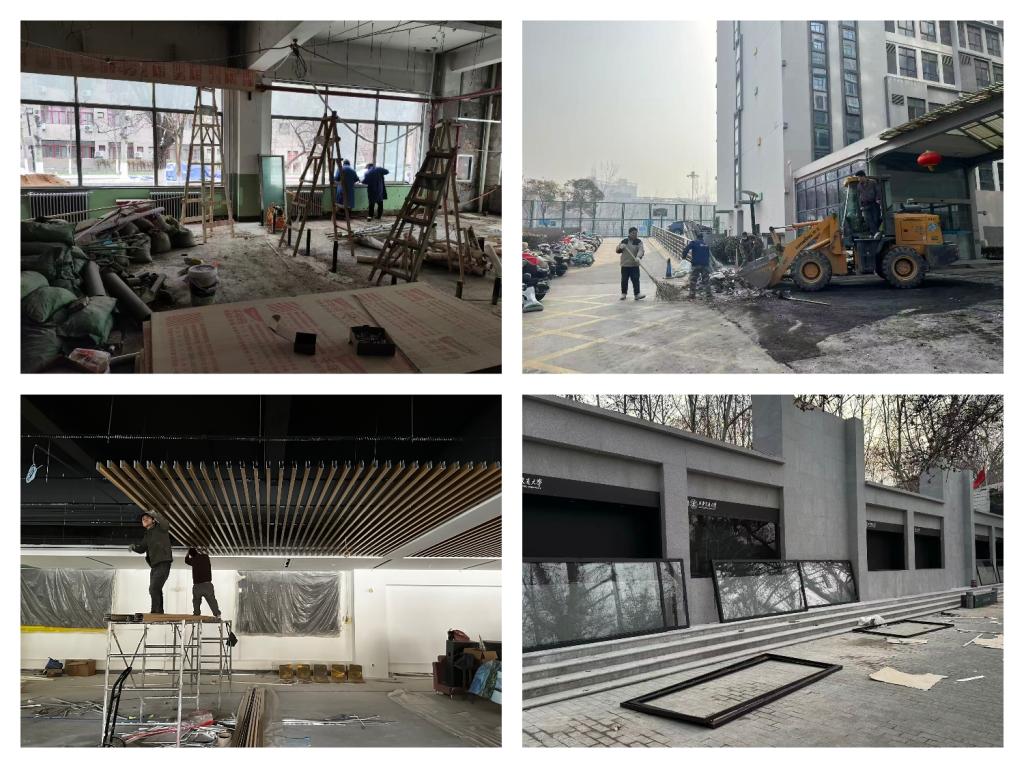 后勤保障部项目办统筹安排各校区寒假在建项目20个,包括思源学生活动中心地下室、青年活动之家、兴庆校区西十六、十七舍地下室等学生活动场所整体室内室外装修。七彩阁西21舍2-9层卫生间拆除,整体防水、墙地面砌砖、吊顶、新增给排水管等装修工程。修缮兴庆校区东15舍、18舍间混凝土道路拆除新做混凝土道路;励志东路、竹园路、学苑东路、学苑西路混凝土路面铣刨拉毛新铺细粒式沥青混凝土。北门两侧浮雕清洗;两侧沿街店面拆除后干挂石材,新做展示性橱窗,门口处绿化重新做。财经主楼二、三层整体室内室外装修,包含室内地、墙、顶面装修,强弱电改造,给排水改造,局部门窗更换等工作内容。同时,对多处校园景观进行翻修绿化,种植绿植。