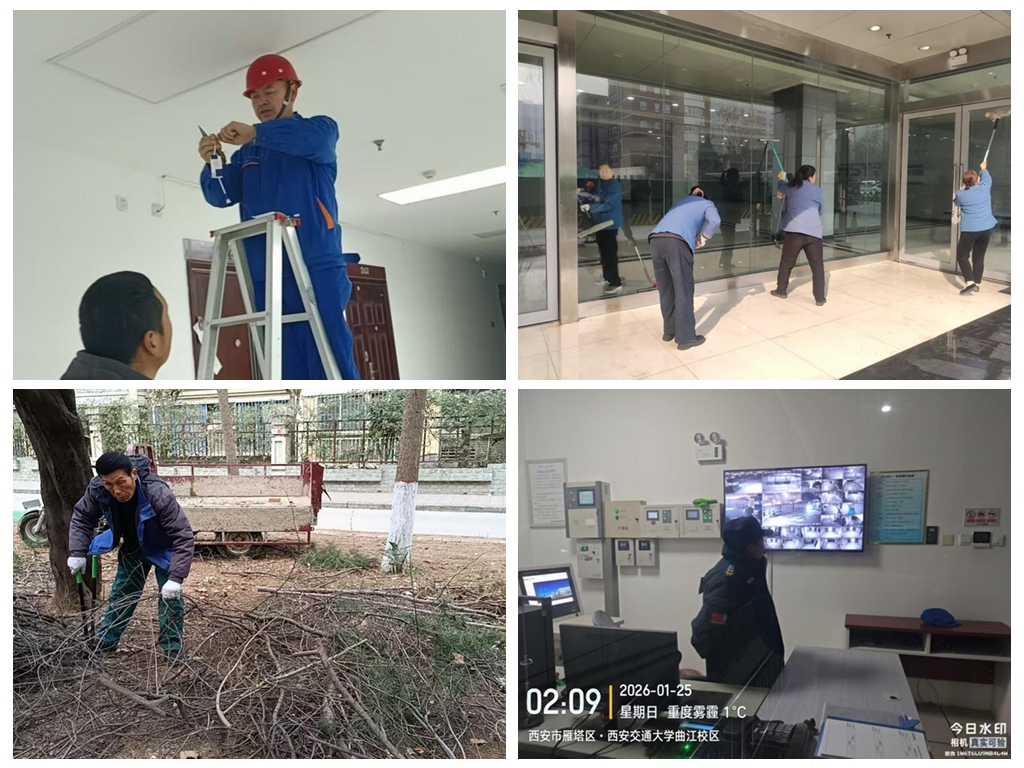 寒假如期而至,新春脚步渐临。西安交大后勤保障部各部门坚守工作岗位,在医疗服务、饮食保障、住房改善、水电运维、校园安全、环境整治等方面精准发力,全方位筑牢服务屏障。一系列暖人心扉的举措与扎实有效的工作,保障了留校师生的平安舒适,也为即将到来的130周年校庆积蓄助力,让寒冬中的校园洋溢着融融暖意。