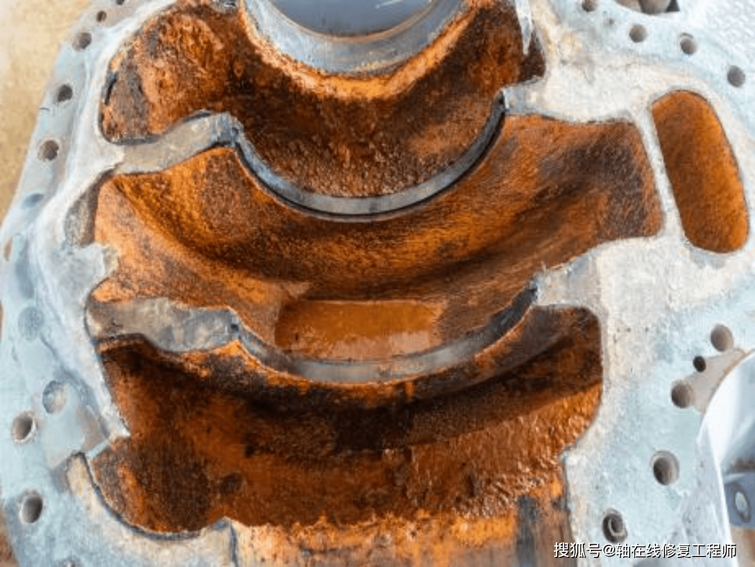 该双开泵运行后,泵壳、流道等过流部位出现大面积腐蚀,伴随冲刷磨损痕迹,腐蚀深度超标,导致泵体密封下降、介质轻微泄漏,泵体效率降低、能耗增加,不及时处理将引发严重泄漏、被迫停机。